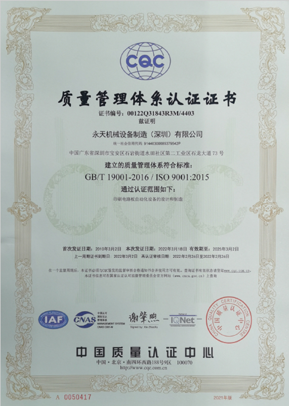 J9.com机械成功通过ISO-9001:2015 国际认证 ,这不但証明了J9.com机械多年来努力的成果,也充分说明了我们一直在进步,为做出更好的产品而努力,使客户在生产过程以至产品品质上获得更大的保障。在推行 ISO-9001:2015 标准过程中,我们全公司员工信守以上质量方针,并全力维护和坚持贯彻执行。